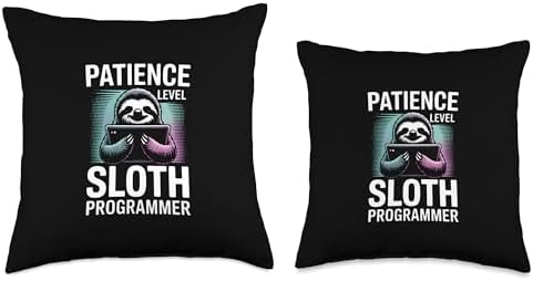 Patience Level Sloth Programmer Funny Coding Throw Pillow