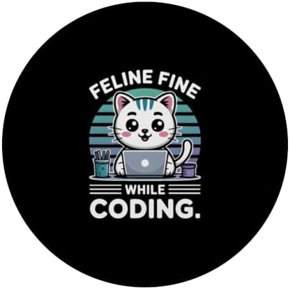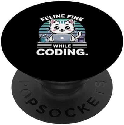 Feline Fine While Coding Programmer PopSockets Adhesive PopGrip