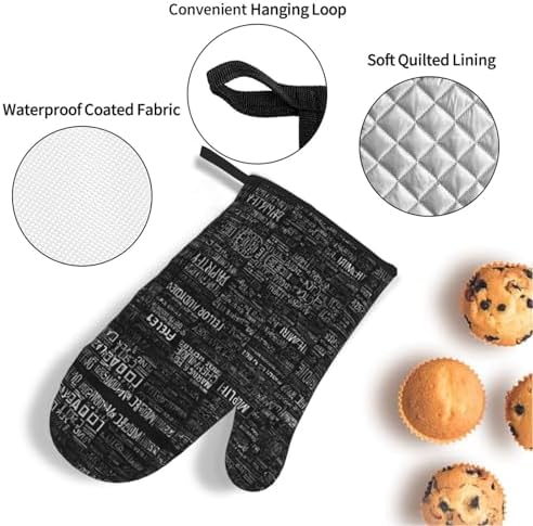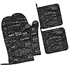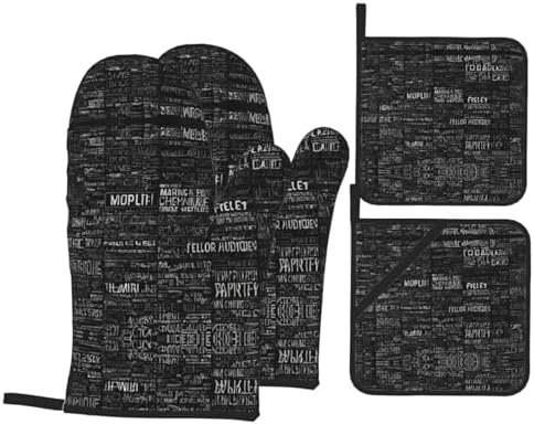 Programmer Programming Code Print Oven Mitts and Pot Holders Set of 4 Waterproof Kitchen Mitts with Storage Rope for Microwave, Stove, and Outdoor BBQ