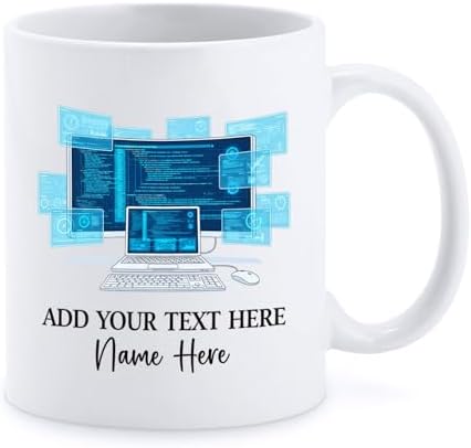 Programmer Ceramic Cup, Personalized Add Text Programmer White Coffee Mug Gifts For Men Brother Son, Software Developer IT Coffee Cup 11 Oz 15 Oz, Customized Computer Developed Ceramic Mug With Name