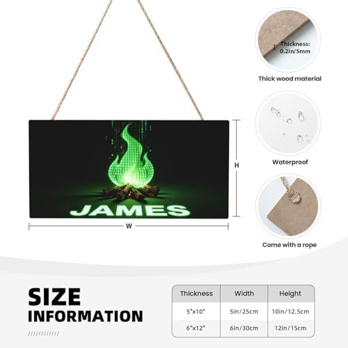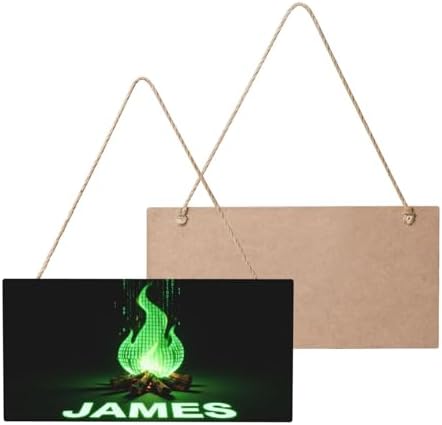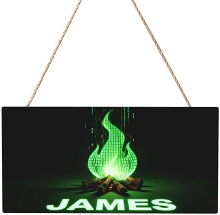 Ignite your decor with a spark of digital genius. This personalized name sign transforms a classic wooden plaque into a futuristic piece of art, perfect for anyone who speaks in code or conquers virtual worlds. The centerpiece of the design is a stunning digital campfire, where the flames flicker with glowing green binary code against a deep black background, creating a captivating visual that celebrates all things tech. Make this sign truly your own by customizing it with your name, gamertag, or a special word. It's the perfect way to claim your space, whether it's your office, bedroom, dorm room, or the ultimate man cave. Crafted from high-quality, thick wood and featuring a waterproof, vibrant print, this durable sign is designed to withstand the test of time. Installation is effortless thanks to the included rustic rope hanger, allowing you to instantly add character to any wall or door. It's more than just a decoration; it's a statement piece. This sign is the ultimate gift for the programmer, cybersecurity expert, gamer, or computer science student in your life, offering a unique and thoughtful way to honor their passion. Level up your wall decor and order your custom sign today.