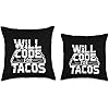 Will Code for Tacos Programmer Coder |- Throw Pillow