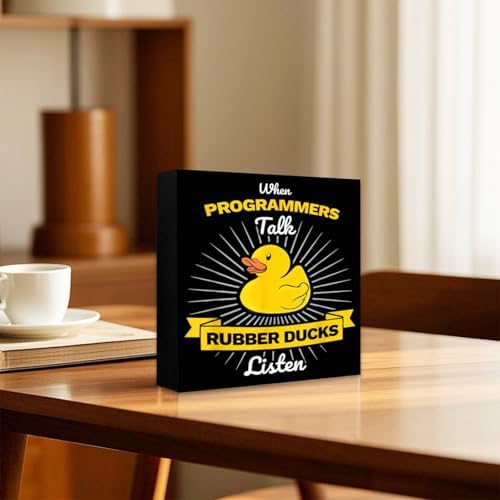 Rubber Duck Senior Debugger Coding Programmer Design Funny Model Table Ornament Wood Craft, Fashion Wooden Ornaments for Bedroom Dresser Decor & Stylish Gifts
