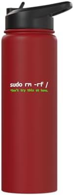 Sudo rm rf Warning - Linux Command Line Tech Humor Stainless Steel Insulated Water Bottle