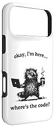Features a messy raccoon holding a laptop and coffee, asking "where's the code?". A humorous design for software engineers, developers, and programmers who know the struggle of early meetings and debugging sessions. Great for computer science students, web developers, and coding enthusiasts who run on caffeine and confusion. Whether for hackathons or casual workdays, this graphic resonates with the chaos of coding life. Two-part protective case made from a premium scratch-resistant polycarbonate shell and shock absorbent TPU liner protects against drops Printed in the USA Easy installation