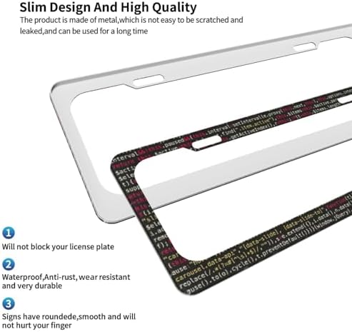 - Package Includes - Comes As A Pair Of Programmer Programming Code Print Licence Plate Frame Sets-Two Car Plates Frame For Front And Rear Use. Each Number Plate Frame Includes Complete Mounting Hardware And Easy Installation Instructions. Simple To Clean-Just Wipe With A Damp Cloth To Maintain Its Shine