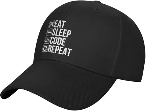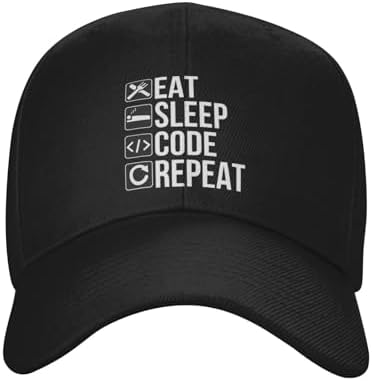 Funny Developer Gift Eat Sleep Code Repeat Men's Solid-Color Baseball Cap - Classic Dad Hat Adjustable,Black