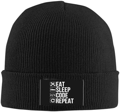 Funny Developer Gift Eat Sleep Code Repeat Warm Beanie Winter Hat – Soft Skull Cap,Unisex Outdoor Knit Hats