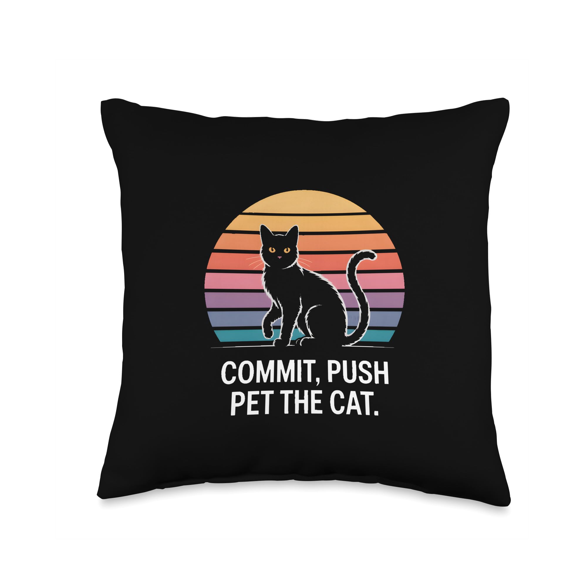 Commit Push Pet The Cat Coding Cat Humor Throw Pillow
