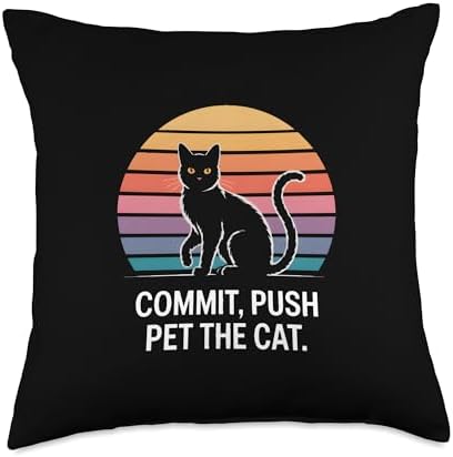 Commit Push Pet The Cat Coding Cat Humor Throw Pillow