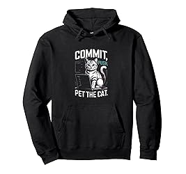 Commit Push Pet The Cat Coding Cat Humor Pullover Hoodie