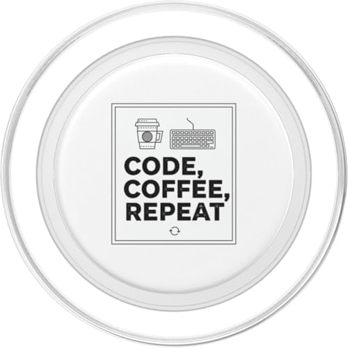 - Minimalist coding design featuring the phrase “Code, Coffee, Repeat” with clean line icons for coffee and keyboard, appealing to programmers, coders, developers, and software engineering enthusiasts.