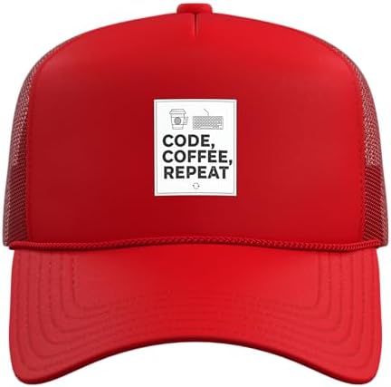 Code Coffee Repeat Programmer Coding Lifestyle Design Trucker Hat with Adjustable Mesh Back