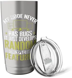 - Imaginative present on the topic programming. Related search words are computer, coding and software. Nice grafic for Computer Fans and Internet Nerds with the title: My Code Never Has Bugs, It Just Develops Random Unexpected Features.