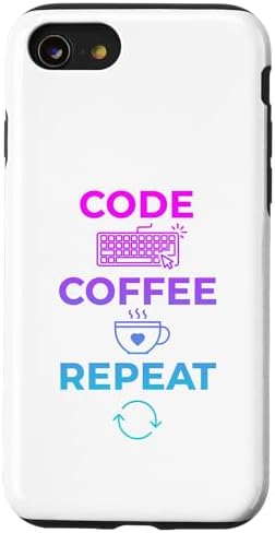 - This coding-themed design features the popular phrase "Code Coffee Repeat" with colorful icons, perfect for developers, programmers, software engineers, and tech lovers who live the daily grind of coding and caffeine.