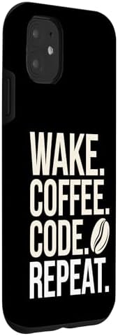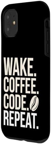 Wake Coffee Code Repeat Funny Computer Programmer Coding Case for iPhone 11