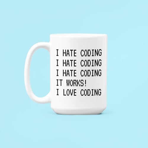 Funny Coding Coffee Mug – I Hate Programming It Works I Love Programming – Novelty Cup for Software Developer, Tech Enthusiast, Geek Office Humor Gift (11oz)