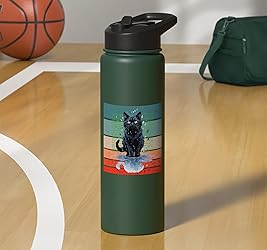 This image features a cat sitting calmly in the rain, surrounded by a background of green binary code. The cat’s reflection appears in the puddle beneath it, adding an element of serenity and mystery. The contrast between the cat’s black fur A mysterious cat sits elegantly amidst a digital rain, represented by streams of binary code in the background. The reflective puddle under the cat adds depth, merging naturals element with a digital twist. This fusion of a calm feline and tech Dual-wall insulated stainless steel construction keeps beverages hot or cold, dishwasher safe and BPA free Leak-proof flip lid includes BPA free plastic drinking straw