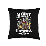 Electrician Vs. AI Electrical Engineer Cannot Replace Humor Throw Pillow