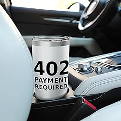 Every developer deserves fair compensation. This clever design features HTTP status code "402 Payment Required", a witty statement about valuing your work. Perfect for freelance developers, programmers, and IT professionals who know their worth. Clean design displays the rarely-seen HTTP 402 status code with its meaning. Great conversation starter for client meetings, job interviews, or tech conferences. A humorous yet assertive way to communicate that quality code comes at a price. Dual wall insulated: keeps beverages hot or cold Stainless Steel, BPA Free Leak proof lid with clear slider