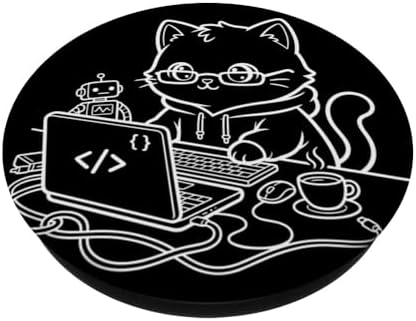 Coder Kawaii Cat Programmer Software Developer PopSockets Adhesive PopGrip