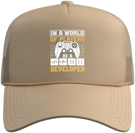 Game Developer Coding Indie Game Developer Programmer Trucker Hat with Adjustable Mesh Back, Khaki