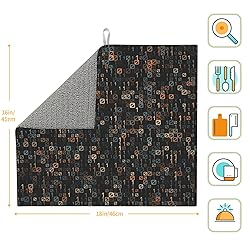 - Say goodbye to messy water puddles on your countertop! Our drying mat is a kitchen game-changer. Made with a super-absorbent microfiber and sponge core, it soaks up to 4 times its weight in water, keeping your counters dry and tidy. The soft surface cushions your delicate dishes and glassware, while also protecting your countertops from scratches and scuffs. When not in use, its flexible design and built-in hanging loop make storage a breeze—simply fold, roll, or hang it up. With a wide array of beautiful prints, it's not just a utility item but a stylish accent for your kitchen. A perfect and practical gift for housewarmings, holidays, or any occasion! Product Type: Kitchen Drying MatMaterial: 100% Polyester Microfiber (Surface) + Composite Sponge (Core)Dimensions: 18 x 16 in (Approx. 46 x 41 cm)Design: Single-Sided Full-Width PrintAbsorbency: Absorbs up to 4x its weight in waterFeatures: Quick-Drying, Reversible, Foldable, Hanging LoopCare Instructions: Machine or Hand Washable; Tumble Dry Low. Do Not Bleach. Package IncludesDish Drying Mat x 1 If you looking for custom personalized patterns? Feel free to contact us, and we will create tailored home products according to your specific needs! Your satisfaction is our top priority—if you have any questions, reach out to us, and we will respond within one working day.