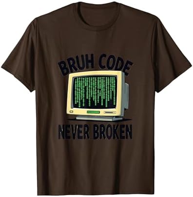 Show your dedication to the coding life with this bold statement design featuring the text 'Bruh code never broken'. This programmer-inspired graphic speaks to developers, coders, and tech enthusiasts who live by the unwritten rules of brotherhood in the coding community. The design captures the confident attitude of someone whose programming skills and loyalty to fellow developers remain unshakeable. Perfect for software engineers, computer science students, web developers, and anyone in the tech industry who takes pride in their craft and values the bonds formed through shared coding experiences. Whether you're heading to a hackathon, tech meetup, coding bootcamp, gaming session, or just want to represent your programming prowess in everyday life, this design communicates your unwavering commitment to both code and community. A great conversation starter among fellow developers and a way to showcase your place in the brotherhood of programmers.