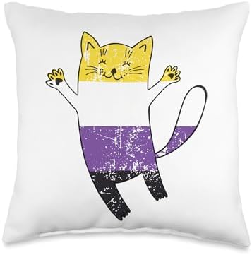 Non Binary Pride Flag Happy Cat Non Binary Throw Pillow