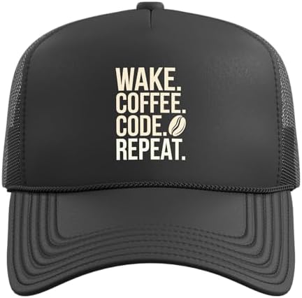 Wake Coffee Code Repeat Funny Computer Programmer Coding Trucker Hat with Adjustable Mesh Back