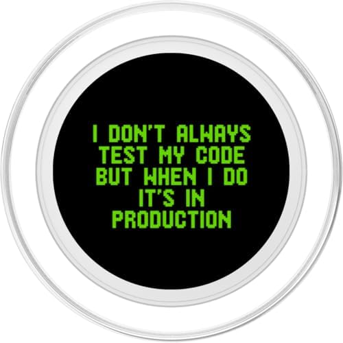 - Show off your developer lifestyle with this funny programmer design. Featuring a classic pixelated font, it captures the sarcasm of software engineering and the thrill of testing code in production. Perfect for web developers and IT pros.