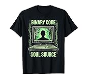 Features prominent text 'Binary code soul source' in authentic Y2K styling that resonates with tech lovers and digital culture enthusiasts Perfect for programmers, gamers, tech workers, and anyone who embraces the intersection of technology and human consciousness with retro millennium vibes Lightweight, Classic fit, Double-needle sleeve and bottom hem