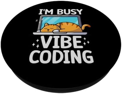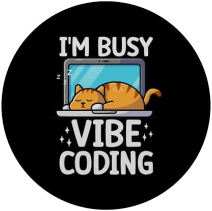 Sleeping Cat Vibe Coding Funny Programmer AI Developer Humor PopSockets Adhesive PopGrip