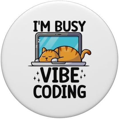 Sleeping Cat Vibe Coding Funny Programmer AI Developer Humor PopSockets Adhesive PopGrip