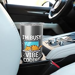 Funny vibe coding design for programmers, software developers, AI builders, prompt engineers, startup founders, tech entrepreneurs, coders, devs, tech creators and cat lovers. Great for hackathons, coding sessions, late-night debugging, AI projects, product builders, web developers, software engineers, and anyone into startup culture, coding humor, and tech meme apparel. Dual wall insulated: keeps beverages hot or cold Stainless Steel, BPA Free Leak proof lid with clear slider