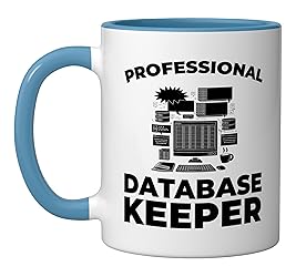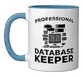 This design makes a great birthday or christmas present. Perfect gift for a database administrator who excels at backup, migration, and system performance optimization celebrate their expertise! This design reads: "Professional Database Keeper". Show your passion for data security with a sleek design that celebrates your mastery in SQL, DBMS, and system performance. 11-ounce ceramic mug is dishwasher and microwave-safe, lead and BPA free Features glossy finish with accent colors on interior, handle, and rim of two-tone designs