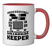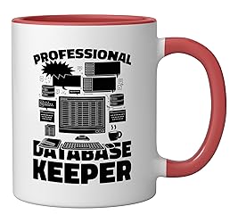 This design reads: "Professional Database Keeper". Show your passion for data security with a sleek design that celebrates your mastery in SQL, DBMS, and system performance. This design makes a great birthday or christmas present. Perfect gift for a database administrator who excels at backup, migration, and system performance optimization celebrate their expertise! 11-ounce ceramic mug is dishwasher and microwave-safe, lead and BPA free Features glossy finish with accent colors on interior, handle, and rim of two-tone designs