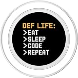 def Life eat sleep code repeat programming Magnetically snaps on and off your phone case so you can easily swap between MagSafe compatible accessories. Adaptor ring included. Make any phone case MagSafe compatible by attaching the adaptor ring. A phone case is required but not included to use the wallet. Printed top is swappable. Close and twist to swap the top with a new design with other compatible PopGrip models.
