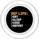 def Life eat sleep code repeat programming Magnetically snaps on and off your phone case so you can easily swap between MagSafe compatible accessories. Adaptor ring included. Make any phone case MagSafe compatible by attaching the adaptor ring. A phone case is required but not included to use the wallet. Printed top is swappable. Close and twist to swap the top with a new design with other compatible PopGrip models.