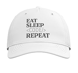 Grab this funny Coder Eat Sleep Code Repeat design for your programmer nerd dad, mom, husband, brother, friend or relative! It's the perfect geek gift idea & present for birthday, father's day, mother's day or christmas! This Coder Eat Sleep Code Repeat design is perfect for IT professionals, coders, computer engineers, software developers & tech support men & women who will proudly wear this information technology, coding, programming, cybersecurity tee Classic five-panel structured baseball hat with high-profile crown Adjustable fit; one size fits most adults