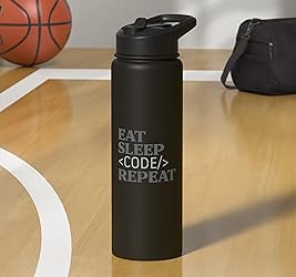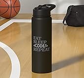 Grab this funny Coder Eat Sleep Code Repeat design for your programmer nerd dad, mom, husband, brother, friend or relative! It's the perfect geek gift idea & present for birthday, father's day, mother's day or christmas! This Coder Eat Sleep Code Repeat design is perfect for IT professionals, coders, computer engineers, software developers & tech support men & women who will proudly wear this information technology, coding, programming, cybersecurity tee Dual-wall insulated stainless steel construction keeps beverages hot or cold, dishwasher safe and BPA free Leak-proof flip lid includes BPA free plastic drinking straw