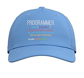 Grab this funny Programmer Definition design for your programmer nerd dad, mom, husband, brother, friend or relative! It's the perfect geek gift idea & present for birthday, father's day, mother's day or christmas! This Programmer Definition design is perfect for IT professionals, coders, computer engineers, software developers & tech support men & women who will proudly wear this information technology, coding, programming, cybersecurity tee Classic five-panel structured baseball hat with high-profile crown Adjustable fit; one size fits most adults
