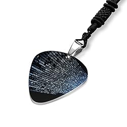 - The guitar pick necklace is a perfect combination of practicality and fashion, designed for those who love unique accessories and pursue a low-key and elegant style. Made of titanium steel, this necklace avoids the trouble of rusting and fading after long-term wear, and its smooth surface brings a comfortable wearing experience that won’t irritate the skin, making it suitable for daily use without any burden. With a 23.6in long thick black rope, the guitar pick necklace is flexible and adjustable, fitting most body types whether you are a man or a woman. Its classic black rope matches all kinds of clothes, from casual T-shirts to formal dresses, adding a touch of personality to your outfit. The guitar pick shape is exquisitely crafted, with a retro and fashionable vibe that can stand out from ordinary necklaces. More than just an accessory, the guitar pick necklace is also a thoughtful gift for your female friends or family. You can DIY patterns on the necklace pendant according to your preferences, making it a unique and meaningful gift. Whether it’s for daily wear, parties or theme activities, this guitar pick necklace can show your personality and taste, bringing you a different wearing experience.