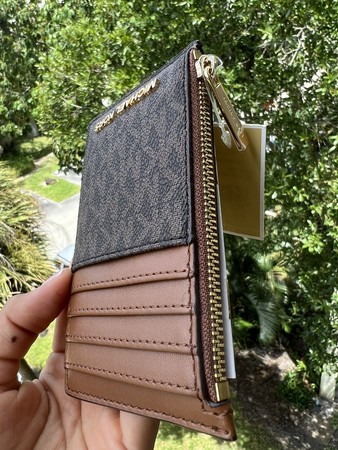 Michael kors Ladies jet set travel top zip card case Wallet Coin Pouch Brown MK