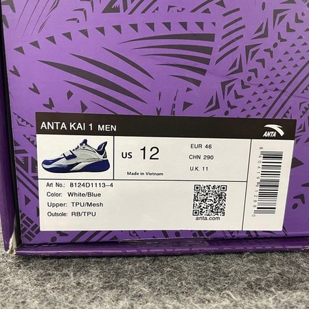 ANTA Kai 1 College Mens Basketball Shoes Men's Size 12 White/Blue