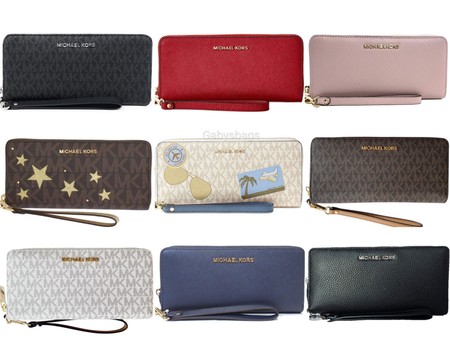 Michael Kors Jet Set Travel Continental Long Wallet Wristlet Brown Vanilla Black