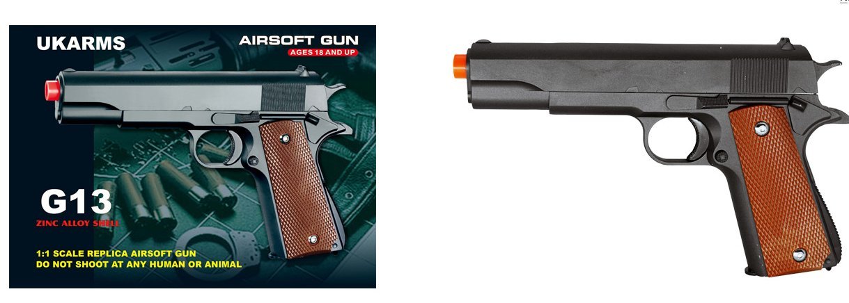 - Take down targets in style with the UKARMS G13 M1911 Airsoft Pistol. UKARMS G13 Airsoft Spring Pistol. Classic M1911 look. ITEM#: G13. No person may openly display or expose any imitation firearm (replica firearm), in a public place.