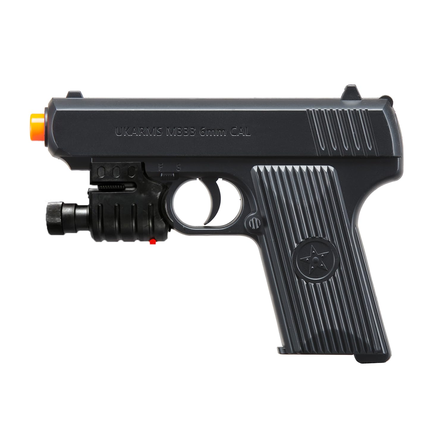- MODEL: UKARMS Full Size 6" Spring Powered Airsoft Revolver. UKARMS Full Sized 6" Spring Airsoft Revolver. ITEM#: G36. No person may openly display or expose any imitation firearm (replica firearm), in a public place.
