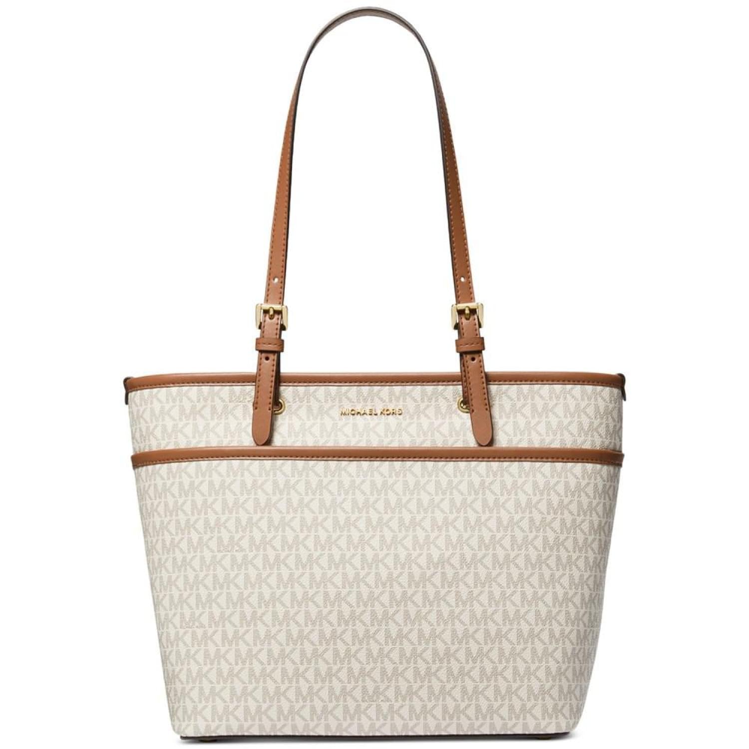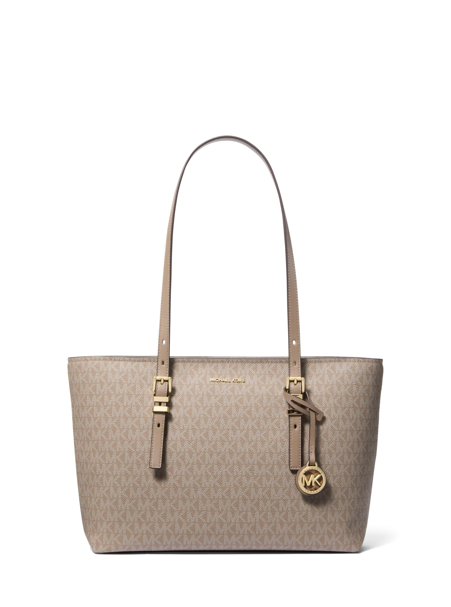 - Powder Blush with Gold tone hardware. Charlotte Large Shoulder Tote. Dust bag included. Interior: Back zip pocket and 2 front slip pockets. Saffiano Leather. Length: 11” (bottom) - 15" (top). Exterior details: 2 side open pockets.