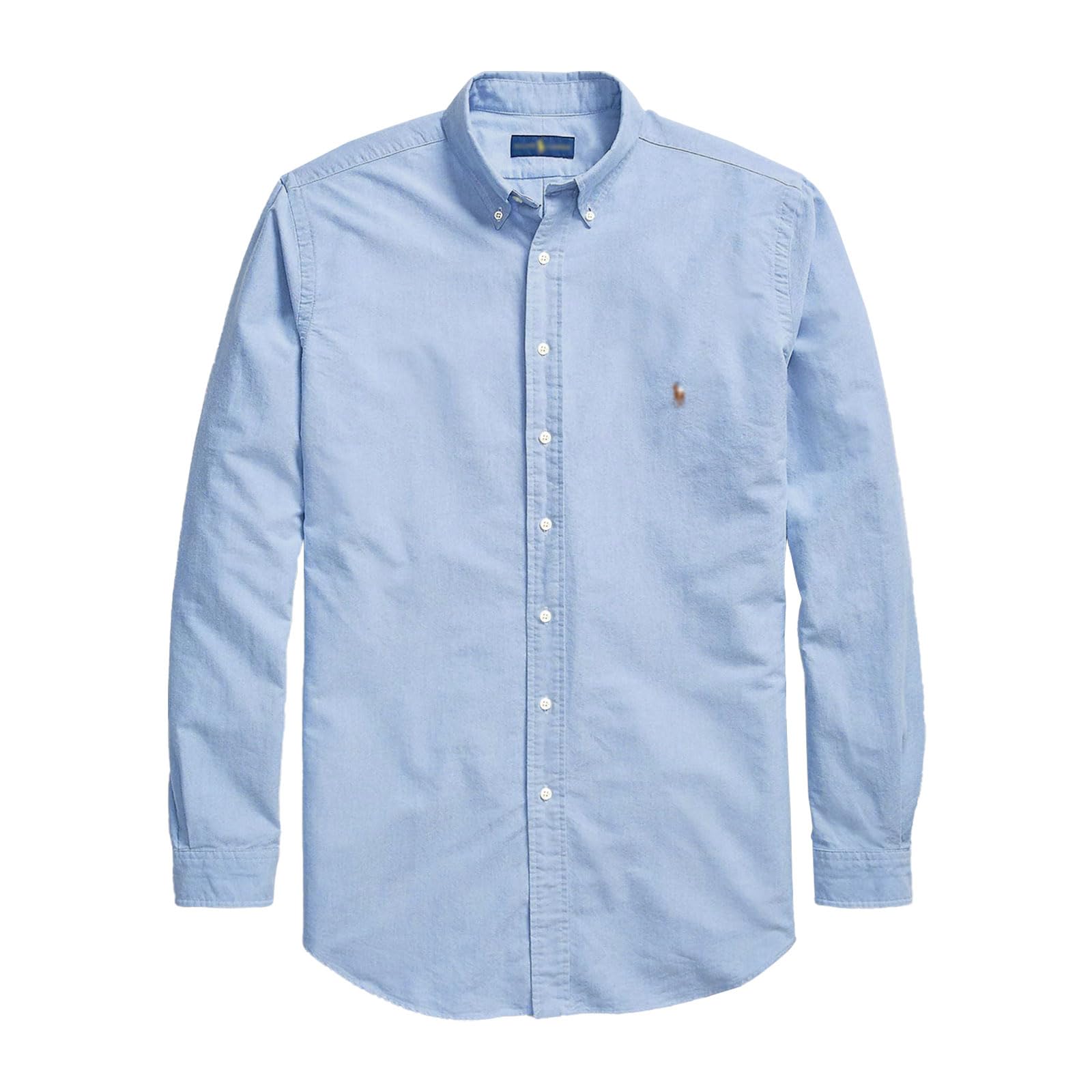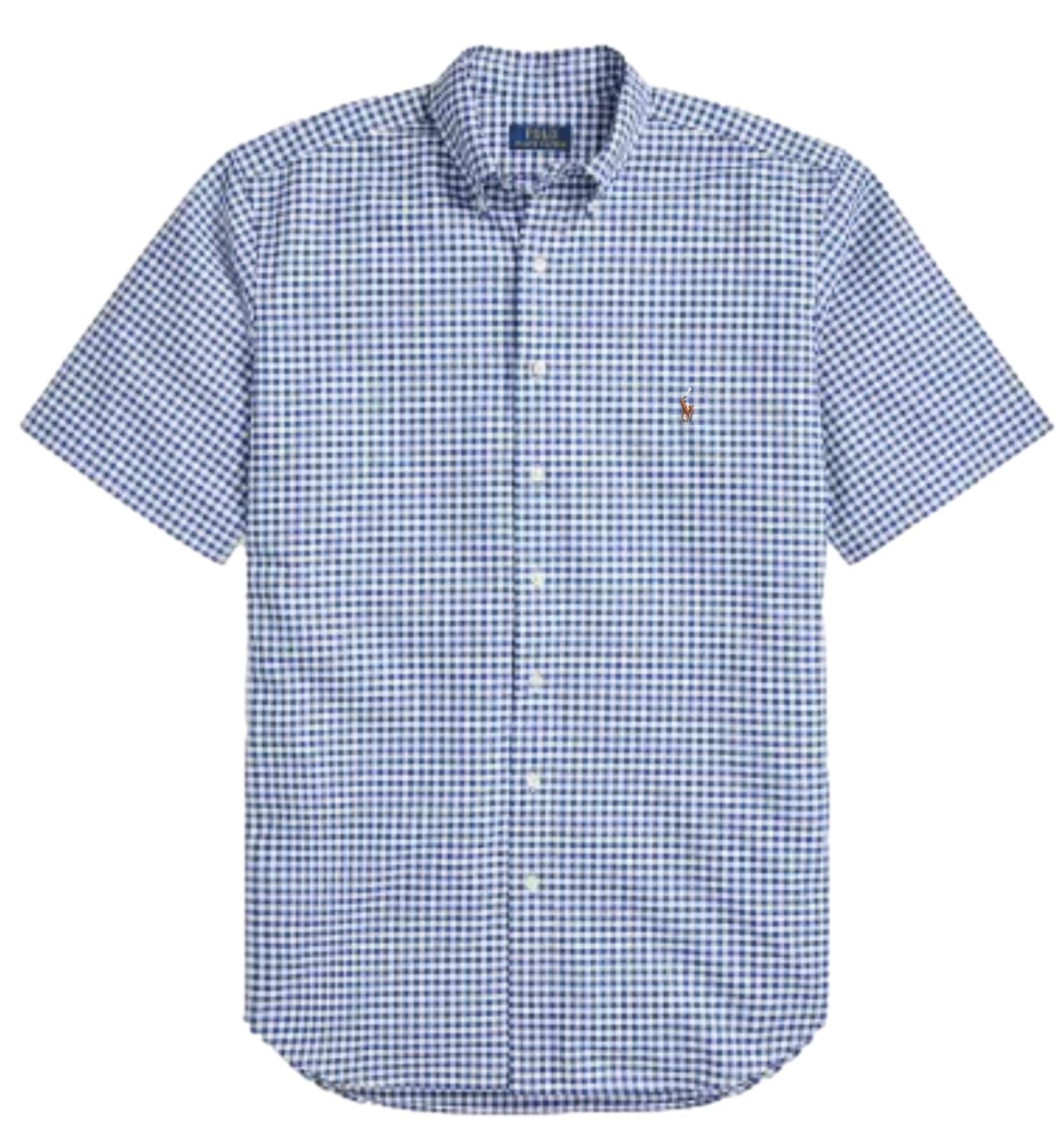 - Plaid pattern in blues and white. Machine washable. 100% Cotton. Polo pony embroidered on left chest. Button-front style with button-down collar.